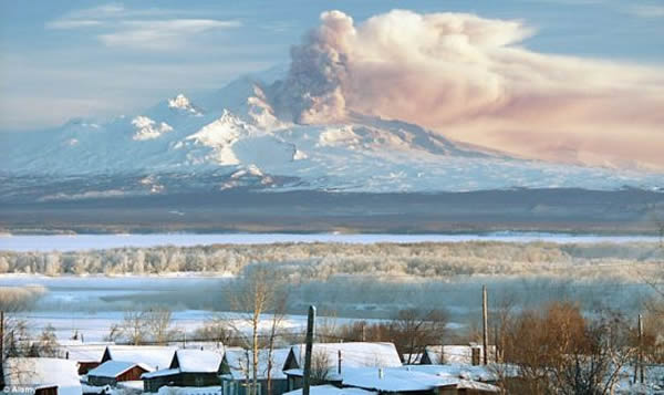 位于俄罗斯堪察加半岛东部偏远地区的思维纳弛火山喷出大量火山灰。