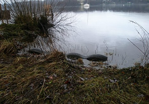 据报道,46岁的约翰•菲利普斯(John Phillips)是在与妻子及三个女儿于温德米尔湖度假时发现这个轮胎的,他说:“当时我们沿着‘水怪’照片中的岸边散步,突然就看到了这个躺在路上的轮胎。当时我就觉得这东西看起来很像传闻中的‘水怪’。”