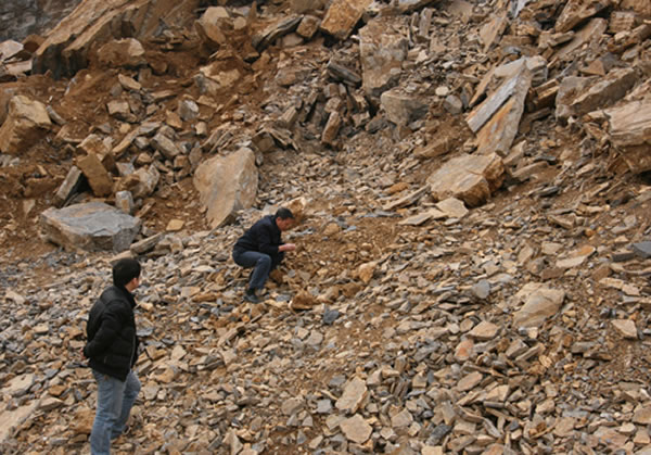 3月5日,当地村民刘某和两位哥哥来到山丘上,准备掏出松动的石头卖钱。刘某说,掏了没多久,他们便在乱石堆中,发现了许多奇怪的石头。为搞清“怪石头”究竟是什么东西,刘某经绥阳县文物管理部门推荐,找到遵义市博物馆求助。