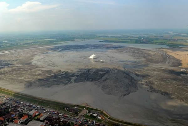 照片于2010年5月拍摄。迄今为止,所有遏制露西泥火山的努力——包括使用混凝土球封堵火山口——最后都以失败告终。根据《国家地理杂志》2008年的报道,卡车和反铲挖土机纷纷出动,努力控制损失,同时修筑一道道堤坝阻止泥流。露西每天喷出多达60万桶泥浆。波龙的商店老板苏米特罗在接受《国家地理杂志》采访时说:“任何举措和技术都无法阻止泥流。在我看来,奇迹不会发生。’