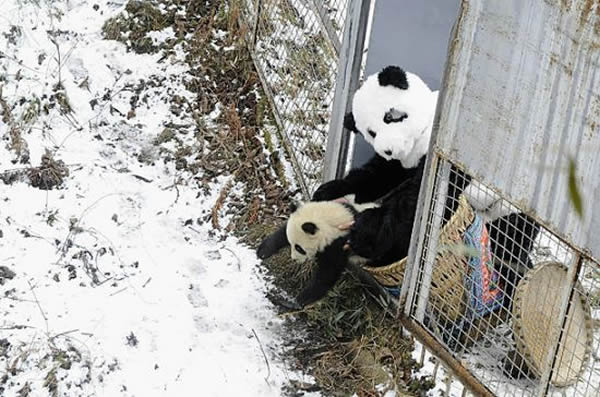 研究人员穿大熊猫服装引导熊猫回归野外 来源: 神秘的地球 时间:2011年3月10日 10:36 9.放归野外 放归野外 2011年2月,这只大熊猫幼仔被放入该保护区的半自然环境里。然而,并非所有放归工作都是一帆风顺。2007年,一只名叫祥祥的5岁雄性大熊猫经过3年的训练后被放归野外,但是不久后研究人员在该保护区的一个偏远地方发现了它的尸体。据估计,目前大约有2000到3000只大熊猫生活在野外,大约有239只圈养大熊猫。 新浪科技(孝文) 上一页123456789 上一篇 下一篇