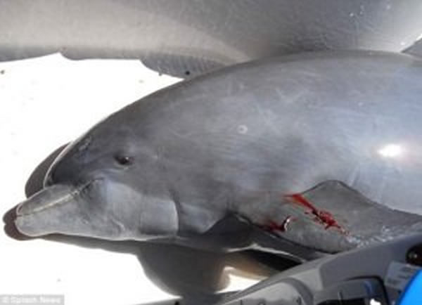海豚意外跳上甲板砸伤女游客