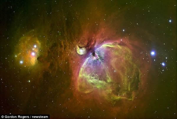 这是猎户座大星云,罗杰斯先生一般拍摄这样的作品都会进行长达9小时左右的曝光