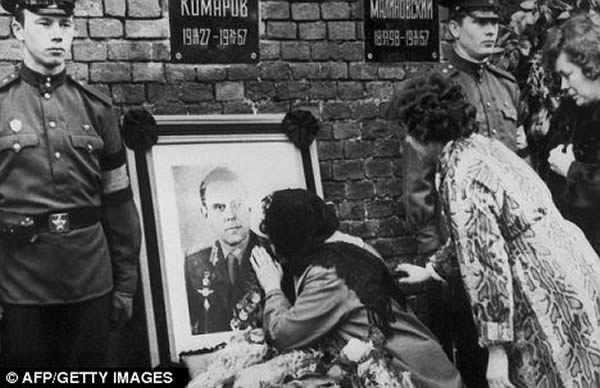 科马洛夫乘坐的飞船坠落在俄罗斯奥伦堡附近的平原上。飞船被撞扁,用于缓冲的火箭也在猛烈碰撞中发生爆炸。据鲁萨耶夫说,人们在废墟里只找到科马洛夫的一个足骨,其他什么也没有。科马洛夫享受到国葬的待遇,他的遗骸被放置在一个敞口棺木里。加加林对朋友的死一直耿耿于怀,1968年他也在一次飞机事故中丧生,这发生在美国成功登上月球的前一年。