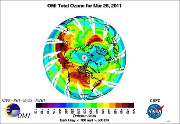 2011年3月26日北极臭氧总量分布(AURA/OMI)
