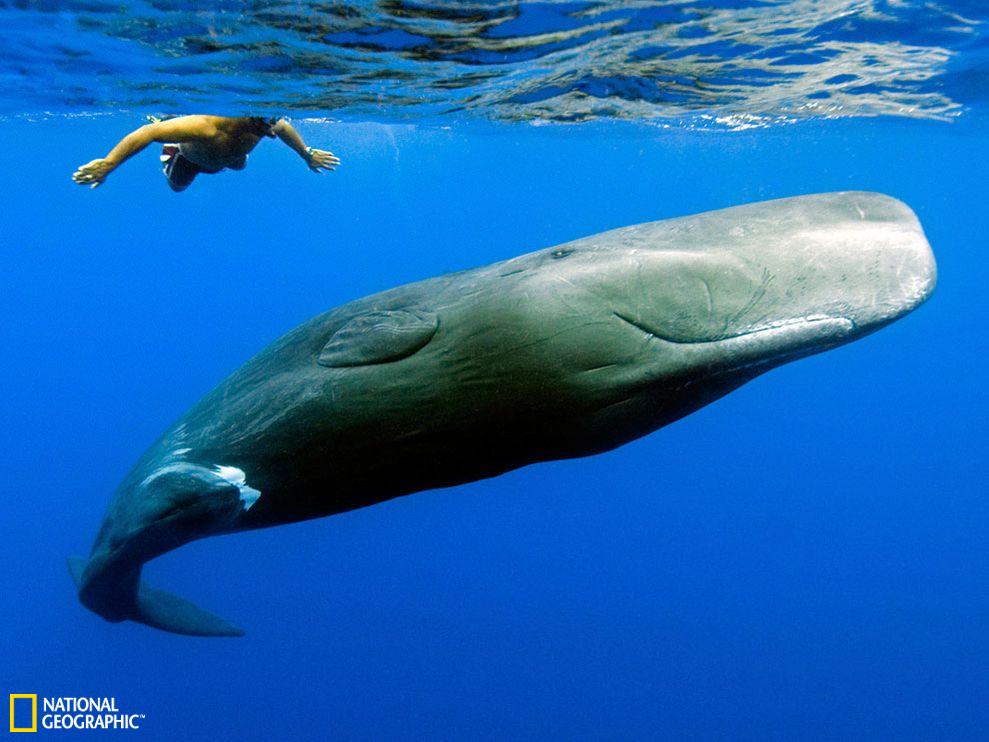 在多米尼加西岸沿海与抹香鲸水下共舞