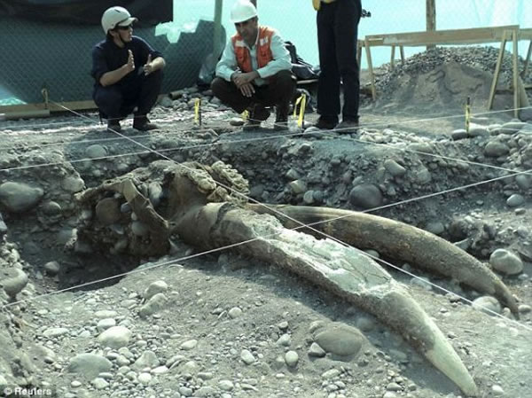 在智利水电站的建筑工地发现的乳齿象化石