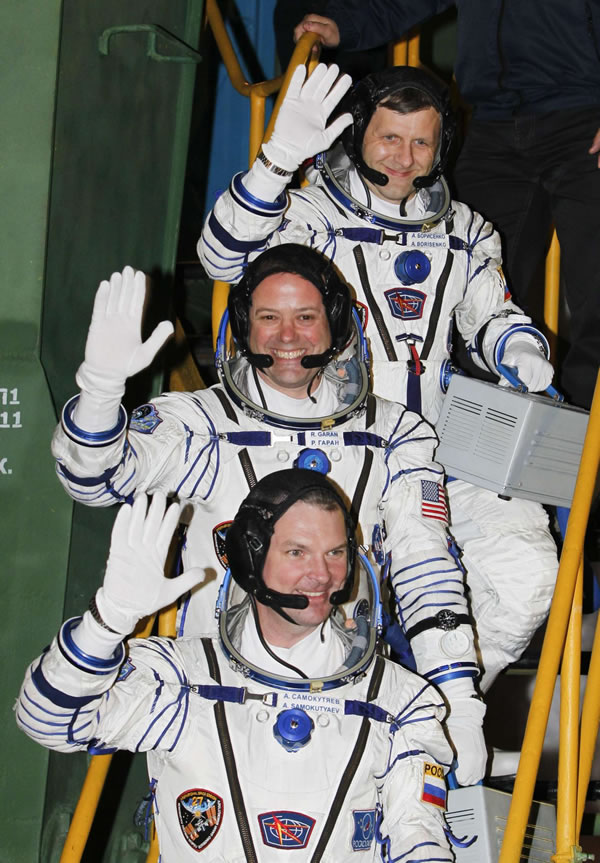 其中两名来自俄罗斯的宇航员亚历山大·萨莫库佳耶夫和安德烈·鲍里先科都是首次执行太空任务,同行的美国航空航天局(NASA)宇航员罗恩·加伦曾有过在2008年搭乘“发现”号上天的经历。他们预计在飞行两天后跟国际空间站对接,加入已经在那里的三名分别来自俄罗斯、美国和意大利的宇航员,预计在太空待上六个月后再返回地球。