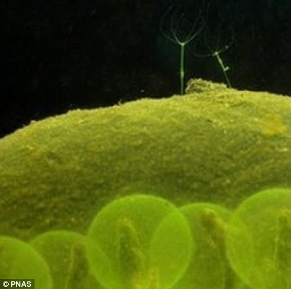 这是首次记录的脊椎动物与植物的共生关系,科学家称,未来一天生物工程师可使用海藻作为其它有机生物的氧气来源,并与人类身体完美地结合在一起。