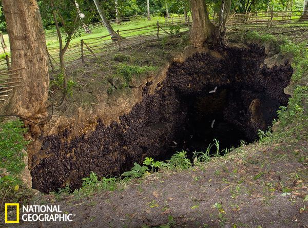 探秘菲律宾蝙蝠洞 来源: 神秘的地球 时间:2011年4月07日 15:30 探秘菲律宾蝙蝠洞 蒙特福特洞拥有与众不同的结构,它有4个水平灰岩坑,人们可以从这里观察洞内情况。蒙特福特说,蝙蝠悬挂在水平的洞壁上,白天不会躲避阳光。无论晴天还是雨天,蝙蝠会准时在下午6时飞出洞穴,开始夜间觅食活动,这种场面是值得一看的奇观。她说:“大约在早上8时30分和9时,最后一批蝙蝠会飞入洞里,在洞壁上可以看到数千双金色的眼睛。也许人们很想知道它们是谁,为什么整个群体都不离开。” 上一页12345678下一页 上一篇 下一篇