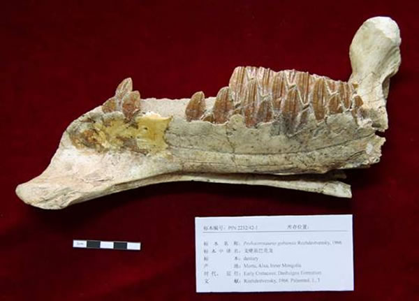 重新回国的戈壁原巴克龙下颌骨化石标本