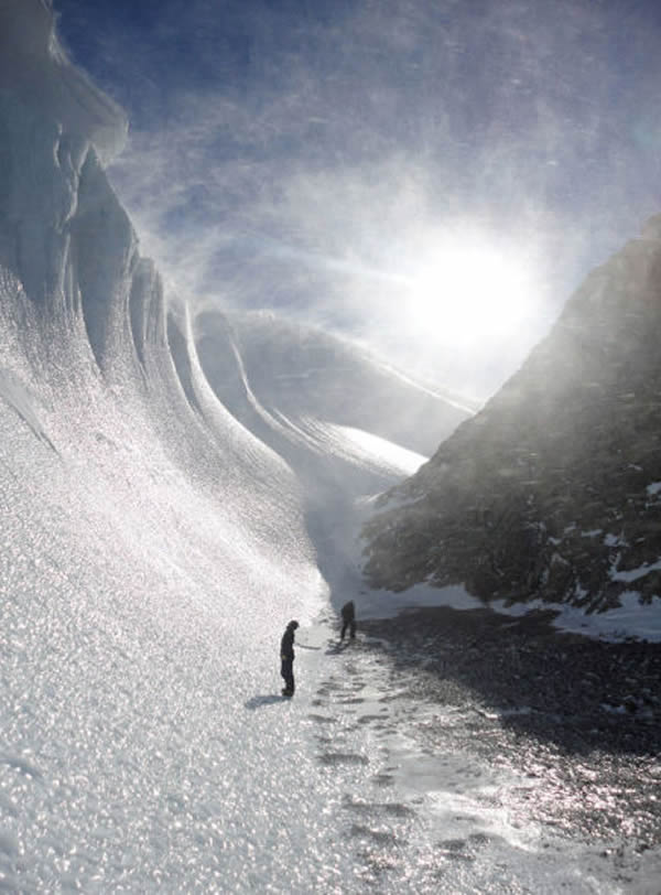 美国《连线》杂志地质美景摄影大赛作品 来源: 神秘的地球 时间:2011年4月19日 10:12 5. 风穴 风穴 摄影师:美国宾州大学卢卡斯-佐伊特 拍摄地点:南极西部埃尔斯沃思山脉联合冰川 拍摄时间:2011年2月 解说:在联合冰川中部,露出地面变形的水成岩(本图右侧)迫使风向围着它转向,从而在冰上形成了所谓的“风穴”现象。地质学家卢卡斯-佐伊特介绍说,“极地网络野外考察队在这里部署了大量的被动地震监测仪和GPS站点,主要是为了研究极地的地质结构以及与冰河运动相关的现象。” 1...上一页234567891011下一页 上一篇 下一篇