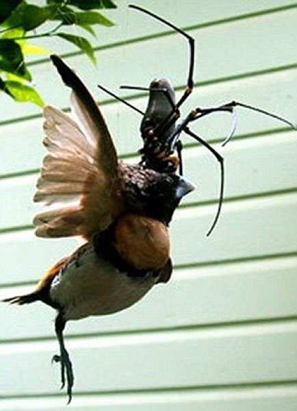 巨型食鸟蛛:2008年,澳大利亚,一只巨型大金蛛正在吞食一只小鸟。