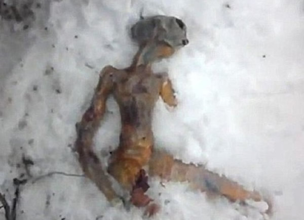 俄两居民声称上个月在雪地里发现了一具“外星人尸体”,“外星人”大概有0.6米高,长得很像科幻片《E.T.》中的外星人。该视频一经上传,立即引起轰动。有网友质疑“外星人尸体”很可能是一具模型,但众多UFO爱好者相信这是真的。