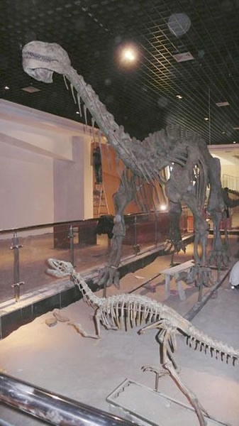 昨日下午,记者在新建的达州市博物馆看到了4条恐龙,它们分别是性情温顺但体形硕大(长9.5米、高2.4米)的食草恐龙—开江巴蜀龙;凶猛霸气身材健硕(长7米、高2.8米)的食肉恐龙—林氏开江龙;身形伶俐(长2.4米、高0.62米)反应迅速的川东虚骨龙;娇小可爱(长约1.2米)的鹦鹉嘴龙。