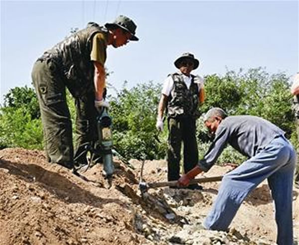 郧县发现鸭嘴龙化石 来源: 神秘的地球 时间:2011年4月25日 08:23 郧县发现鸭嘴龙化石 23日,考古人员在郧县梅铺镇李家沟村3组后山梁上进行考古发掘时,挖出鸭嘴龙化石。据悉,李家沟村曾先后多次挖出恐龙化石和恐龙蛋化石。图为发掘现场。 楚天都市报 徐雁初 周家山 杨春灵 上一篇 下一篇 TAG: 化石 鸭嘴龙