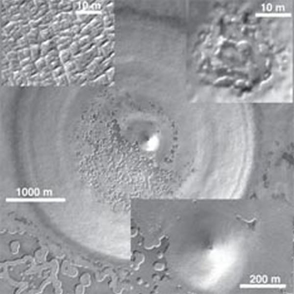 火星表面有许多环型山,而且沟壑纵横,沙丘、砾石遍布,峡谷河床到处可见。科学家们推测,很早以前,火星上的大气层或许与地球上的大气层相似,火星上也曾发过洪水,地面上一些小河道,清楚地证明了许多地方曾受到侵蚀。
