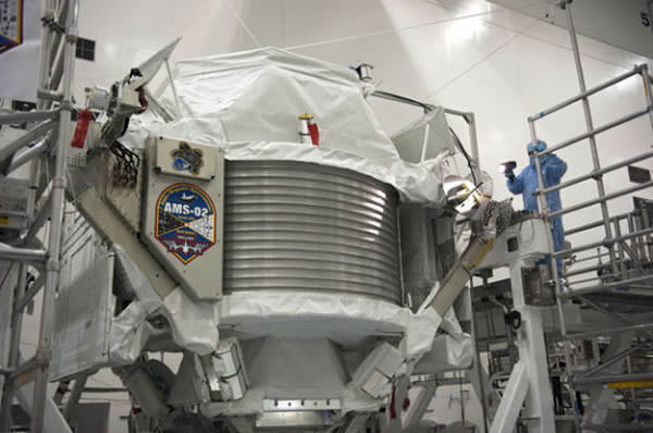 在“奋进”号航天飞机即将发射之前,工程师们正在对反物质太空磁谱仪实施最后的检测。反物质太空磁谱仪将在国际空间站上探测宇宙射线。