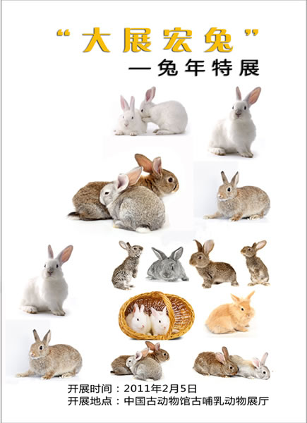 2011年是农历兔年,中国古动物馆继续举办:大展宏“兔”—兔年特展。 兔是老百姓喜爱的一种小动物。民间曾有玉兔、兔儿爷等传说;以及属兔的人可以步步高升,给人们带来吉祥与平和。在生物界,兔形类是一类重要的动物资源;由于地球上自然环境的变化,人类活动的加强,如森林采伐,草原农垦和环境污染等等的影响,兔形类的生态环境已经今不如昔,不少种类濒临消失的境地,如我国的雪兔、海南兔、塔里木兔和柯氏鼠兔等。兔形类资源的保护和利用越来越受到人们的关注。本次特展将主要从兔形类的起源和演化、兔形类发展的顶峰时期,以及兔形类的衰退时期几个方面对兔形类的历史和现状进行全面展示,展品中包括“世界第一兔”——远古道森兔的头骨化石,它产自内蒙古二连地区,是我国古生物学家研究命名后首次与公众见面。