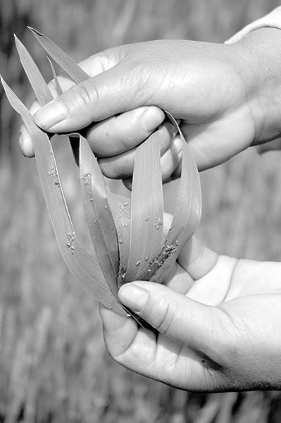 安徽长丰遭遇春旱虫灾 来源: 神秘的地球 时间:2011年5月03日 08:40 4月25日,安徽省长丰县下塘镇万岗村村民展示遭受病虫害的麦苗。去年入冬以来,长丰县30多万亩油菜接连遭受干旱、寒潮袭击,油菜苗状况差,一类苗比重较少,部分苗被冻死。今年入春以来,该县再遭干旱,大量在田麦、菜遭受病虫害侵袭,当地农民遭受较大经济损失。 科技日报 上一篇 下一篇