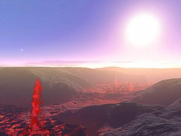艺术概念图,展现了55 Cancri e地貌。这颗系外超级地球的密度与铅相当,一年只有不到18个小时。