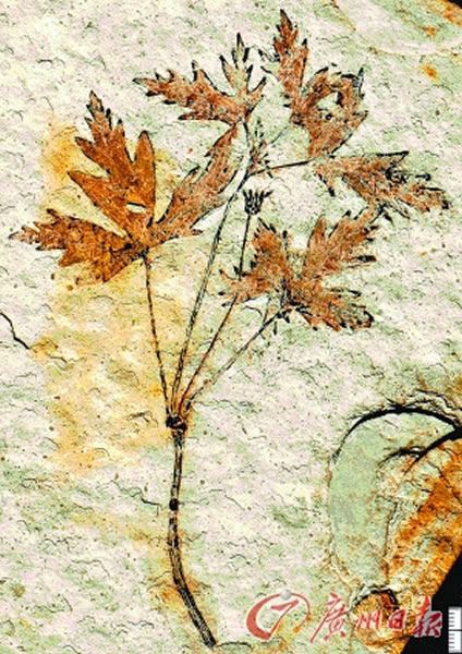 在它附近生活的,还有个头小小的狼鳍鱼。“李氏果的植株长约16厘米,化石标本的岩石厚度约1厘米。李氏果的两侧还各有一条小鱼,长不到4厘米,叫‘戴氏狼鳍鱼’,这是著名‘热河生物群’传统的三个主要代表化石之一。狼鳍鱼的发现使我们认识到,这里曾有过湖水或河水的存在,李氏果可能生长在湿地或沼泽的环境。”孙革说,“李氏果非常接近现生的毛茛科植物,形态上很像现生的铁线莲或雀翠花。由于它产于早白垩世早中期的义县组,对于真双子叶被子植物化石来说时代最早,因此,李氏果是我国乃至全球迄今最早的与现生被子植物有直接系统演化联系的被子植物化石,即有花植物的近亲。”