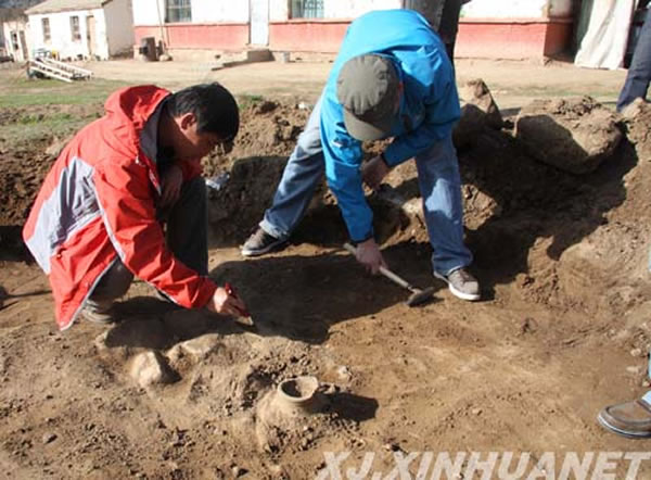 经新疆远方旅游公司申请,自治区考古所于4月29日—5月1日,在阿勒泰地区和富蕴县文物局的配合下,对富蕴县可可托海国家地质公园停车场建设区域内的县级文物保护单位“哲勒巴尕什墓地”中的墓葬进行了抢救性考古发掘,出土古陶罐一个,现已带回自治区考古所做进一步研究。