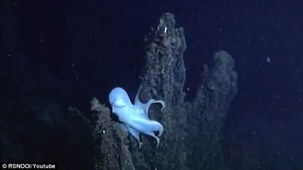 由于这里的水温低至2摄氏度,因此这些章鱼只能生活在海下火山的热液喷口附近。