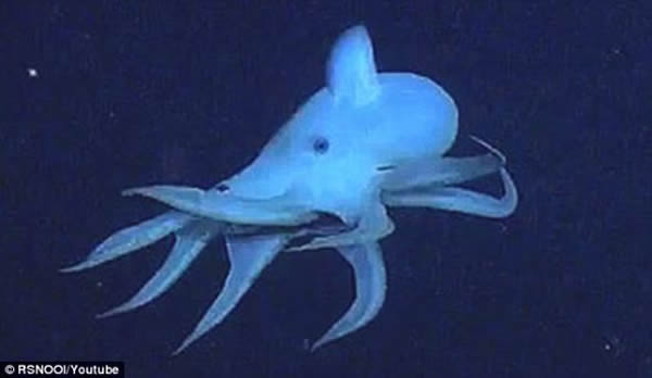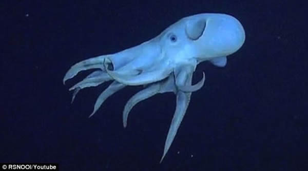 它看起来可能很像电脑游戏里的坏家伙,但是这种长相怪异的动物其实是一种世界上最罕见的深海章鱼。