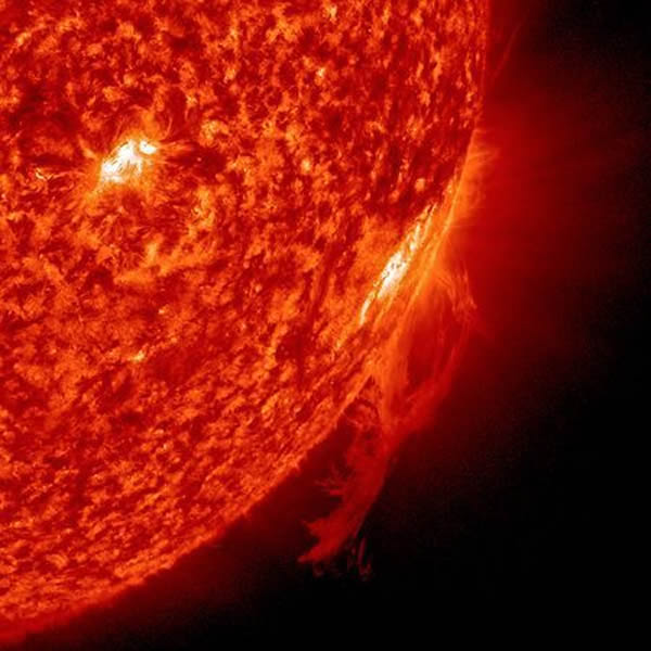 美国国家地理一周精彩太空照:星系“分子风” 来源: 神秘的地球 时间:2011年5月16日 10:08 4.太阳表面等离子体 太阳表面等离子体(图片来源:SDO/NASA) 美国宇航局的太阳动力学观测卫星最近对太阳的一个活跃区域进行了观测,拍摄了这幅等离子体(带电气体)沿磁场线来回移动的照片。根据这颗卫星的观测,悬浮的红热等离子体发出强远紫外线,在太阳表面逗留时间超过两天。 上一页123456下一页 上一篇 下一篇