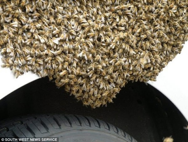 “邻居到家里告诉我蜜蜂包围了我的车,我简直不能相信,那场面实在令人难以置信。在我的车上没有任何蜜蜂可以吃的东西,但它们好象很喜欢待在油箱盖附近。”梅丽莎说。