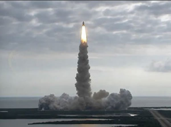 美国奋进号航天飞机发射升空 携带婴儿鱿鱼上太空
