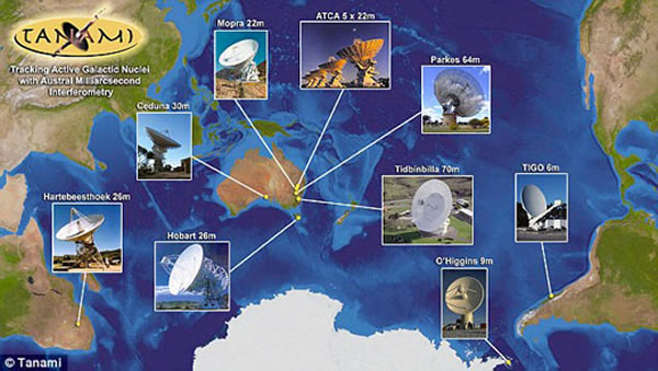 塔纳米工程的研究人员通过结合使用四大洲的九个无线望远镜阵列来追踪这个活跃的半人马座星系核心。半人马座A星系是可见的,又名NGC5128,在距离地球1200光年之远的地方。从无线电波中可以观察到,半人马座A是天空中最大最亮的天体之一,表观尺寸约为月球的20倍,它置于一对巨大的无线放射波瓣间(这两对波瓣分别有一百万光年长),波瓣间充满了物质流,而这些物质均来自星系中心附近的黑洞喷发出的粒子。而且美国宇航局的研究人员利用费米尔伽玛射线太空望远镜从半人马座A的中心探测到了很多高能量的放射物。研究人员马提亚—卡德勒(Matthias Kadler)表示,这个放射物比无线电波的能量要大数亿倍,研究人员对此分析,这是由于该星系中包含有一个名为超级大黑洞,重量约为太阳的5500万倍,为第一批等同于星系的宇宙辐射源头之一。