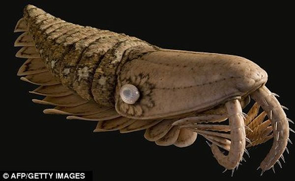 这种样子奇特的大虾名为“奇虾”,它们可以长到6英尺(约1.8米)长。这可不是今天的海虾那样的动物,这种庞然大物可以轻易用它的一对大镰刀撕碎扇贝坚硬的外壳。