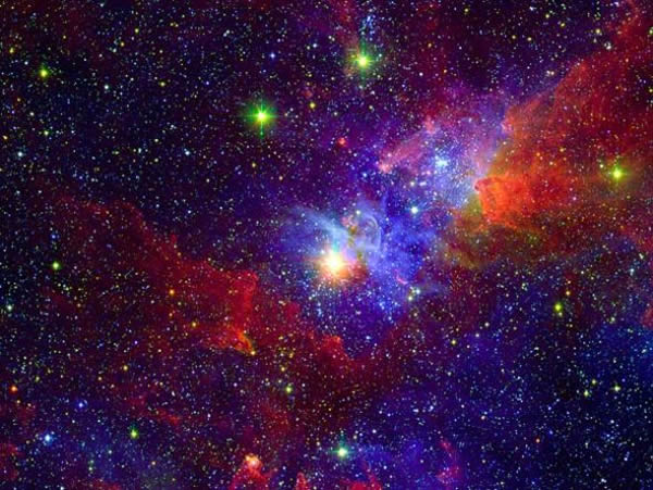 美国国家地理一周太空图片精选:船底座星云 来源: 神秘的地球 时间:2011年6月01日 12:24 2.船底座星云 船底座星云(图片来源:NASA, Caltech, and M. Povich/Penn State) 大型恒星船底座伊塔星的合成图片。这颗卫星位于船底座星云,四周被气体和尘埃坏绕。天文学家认为,船底座伊塔星的生命正走向终结,可能在不久后以超新星爆炸的形式死亡。天文学家能够在地球上观察到这一过程。绘制这幅图片是最近对船底座星云进行探测的一部分。根据探测发现,星云尘埃中隐藏着一系列大质量恒星。美国宇航局斯皮策太空望远镜进行的红外观测发现,厚厚的尘埃云呈红色,在可见光下则呈蓝色。 上一页12345678下一页 上一篇 下一篇