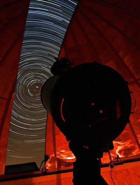 美国国家地理一周太空图片精选:船底座星云 来源: 神秘的地球 时间:2011年6月01日 12:24 4.星星轨迹 星星轨迹(图片来源:Amir Abolfath, TWAN) 最近公布的一幅长曝光照片,在伊朗的一座业余天文台的圆顶外,星辰好似在旋转。照片曝光时间超过两小时,星星环绕北天极移动。提到北天极,人们总是会想到北极星。相对于北半球观测者而言,北极星总在地平线上,其地平高度角与观测者的地理纬度几乎相同。在南半球,与南天极对应的自然是南极星。巴西国旗中共有27颗星星,其中一颗便是南极星。 上一页12345678下一页 上一篇 下一篇