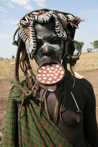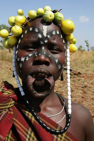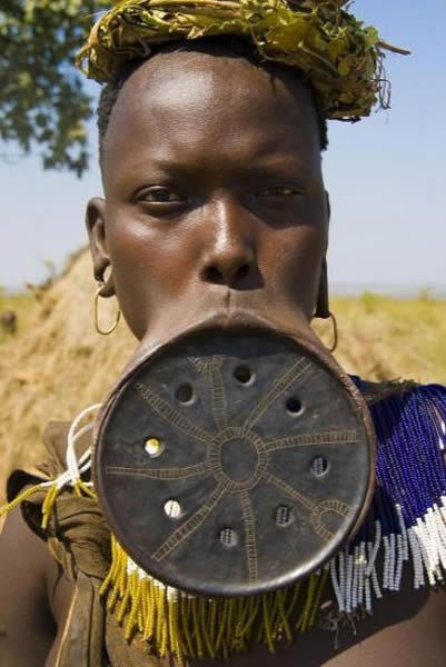 穆尔斯部落是非洲,甚至有可能是世界上仍在延续佩戴唇盘这一风俗的为数不多的几个部落之一。