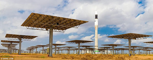 据英国每日邮报报道,它像一个巨大的艺术作品!但事实上这个匀称的环形太阳能面板是迄今世界上首个能夜间发电的太阳能电站。