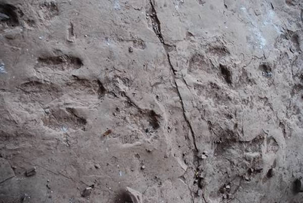这块恐龙足迹化石在70cm×40cm的范围内,共有9个不同大小、不同方向的恐龙脚印,种类包括兽脚类、蜥脚类和鸟脚类,足以证明綦江地区曾是恐龙种类繁多、活动频繁的地方。
