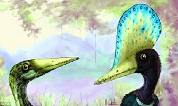 英国莱斯特大学的科研人员发现,雌性翼龙的脑袋上没有装饰性羽冠,而雄性翼龙头上的长羽毛,有时是头骨长度的5倍,它们通过展示美丽的羽冠,向潜在的交配对象求爱。