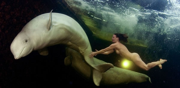 娜塔利娅之所以需要脱光所有衣服,是因为有关专家认为白鲸不喜欢和潜水衣等人造材料接触,如果没有了衣服这层障碍,人类才更可能和白鲸建立起亲密的关系。