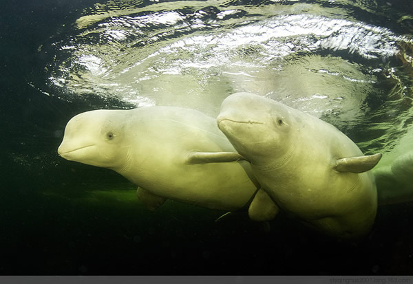 与娜塔利娅亲密接触的两头白鲸有着非常好听的名字马特李娜和尼尔玛。在整个过程中,这两个小家伙似乎都很享受和女潜水员之间的互动,对其非常友好,动作非常亲昵。