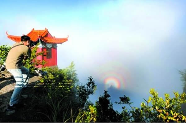 第一次亲眼目睹“佛光”的摄友李耀明,更是掩饰不住自己的兴奋之情。“雾很大,太阳被遮住的时候就看不到“佛光”。“佛光”断断续续持续了近1个小时,我拍了上百张照片。”46岁的李先生在巫溪县路政大队工作,“我搞摄影有七八年了,到云台山拍片也有几十次,这是第一次看到“佛光”。”李先生曾几次去峨眉山想拍摄“佛光”都没有遇到,“没有想到反而在家门口遇到了,太激动了。”