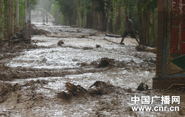 6月20日中午,国家5A级景区——葡萄沟景区遭遇罕见洪灾,突如其来的洪水冲进民房、餐厅、商店以及葡萄沟景区内的“达瓦孜游乐园、王洛宾艺术馆”等著名景点,数百名游客和上千名群众一度被洪水围困,当地群众不得不将自己家的摩托车、三轮车、小轿车用绳索捆住,以免被洪水冲走。