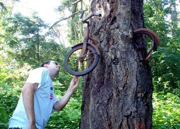 这棵美国的树花几十年时间“吞掉”了一辆自行车