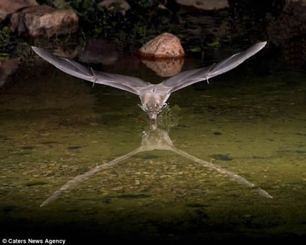 这张珍贵的照片拍到了一只饥饿的蝙蝠冲向它的猎物的一瞬间