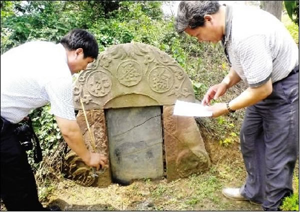 昨日,新洲文物管理所所长谢新民说,6月20日第三次文物普查第三阶段补查中,他们得知有此墓,遂到现场调查。依据墓碑所载,确定为清嘉庆年间“吴世炳”之墓。