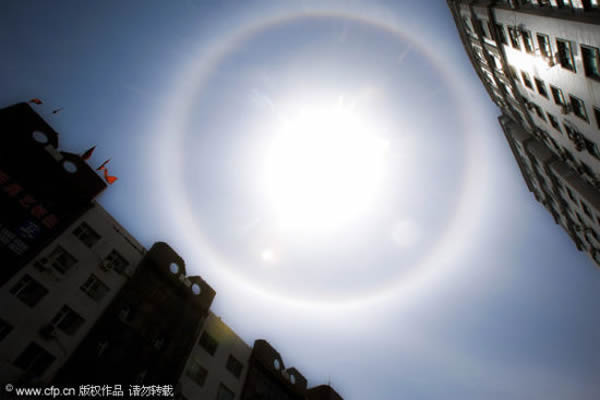 长春上空出现日晕 来源: 神秘的地球 时间:2011年6月27日 14:52 长春上空出现日晕 长春上空出现日晕 长春上空出现日晕 长春上空出现日晕 2011年6月26日10时许,长春市上空出现日晕景观。 日晕是一种大气光学现象,是日光通过卷层云时,受到冰晶的折射或反射而形成的,是以日光作自然光源,经冰晶的折射和反射作用而形成的晕。 CFP 上一篇 下一篇 TAG: 日晕