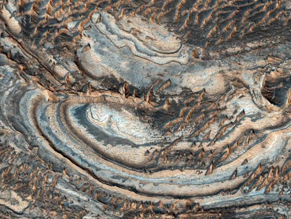 美国国家地理一周精彩太空照:银河系月食 来源: 神秘的地球 时间:2011年6月29日 14:42 5.火星水手号峡谷 火星水手号峡谷(图片来源:ASU/NASA) 美国宇航局的火星侦察轨道器拍摄的一幅高清晰照片,6月7日对外公布,呈现了火星水手号峡谷。照片中,矿石沉积物带弯曲着穿过沙丘。科学家对矿石进行研究时发现了奇异成分化学信号,可能由火星古代的水形成,浅色带可能由蛋白石构成。火星矿石沉积物可能并不含有宝石矿石,这对宝石爱好者来说无疑是个坏消息。但矿石沉积物带的蛋白石可能是另一个宝藏。在地球上,蛋白石中保存着化石和其他生物学证据。 上一页12345678下一页 上一篇 下一篇
