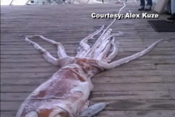 美国渔民在墨西哥湾打捞起一条巨型鱿鱼 来源: 神秘的地球 时间:2011年6月30日 10:01 美国渔民在墨西哥湾打捞起一条巨型鱿鱼 据美国合众国际社6月28日报道,三名美国渔民26日在墨西哥湾打捞起一条巨型鱿鱼,连头带触角足有7米长,重达90公斤。 渔民本茨说,当天上午11点半左右,他们看到海面上漂着一团白乎乎的东西,靠近才发现是一条体型巨大的死鱿鱼。船上人都没见过这么大的鱿鱼,便把它打捞上来带到港口。港口的渔夫们见到这只巨型鱿鱼也十分惊讶。 本茨联系了野生动物保护组织,该组织将它送往佛罗里达大学进行研究。 中国日报网 张品秋 上一篇 下一篇 TAG: 墨西哥湾 鱿鱼